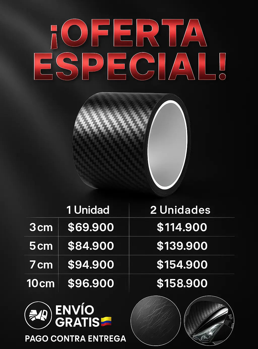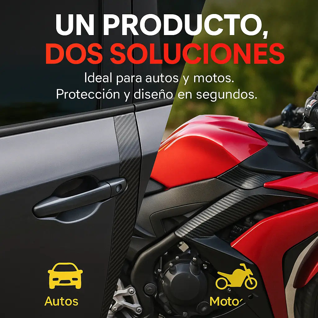 La Cinta Adhesiva de Fibra de Carbono es universal y se adapta a cualquier tipo de vehículo: carros, motos, scooters, cuatrimotos, camionetas, etc.